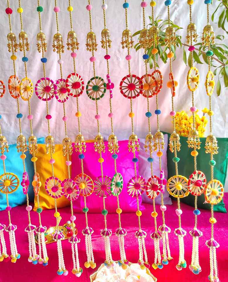 Mexican Kaleera Pompom String for Indian Wedding Mehndi Party Fiesta Festival Decor Colourful Photo Booth Backdrop Decoration
