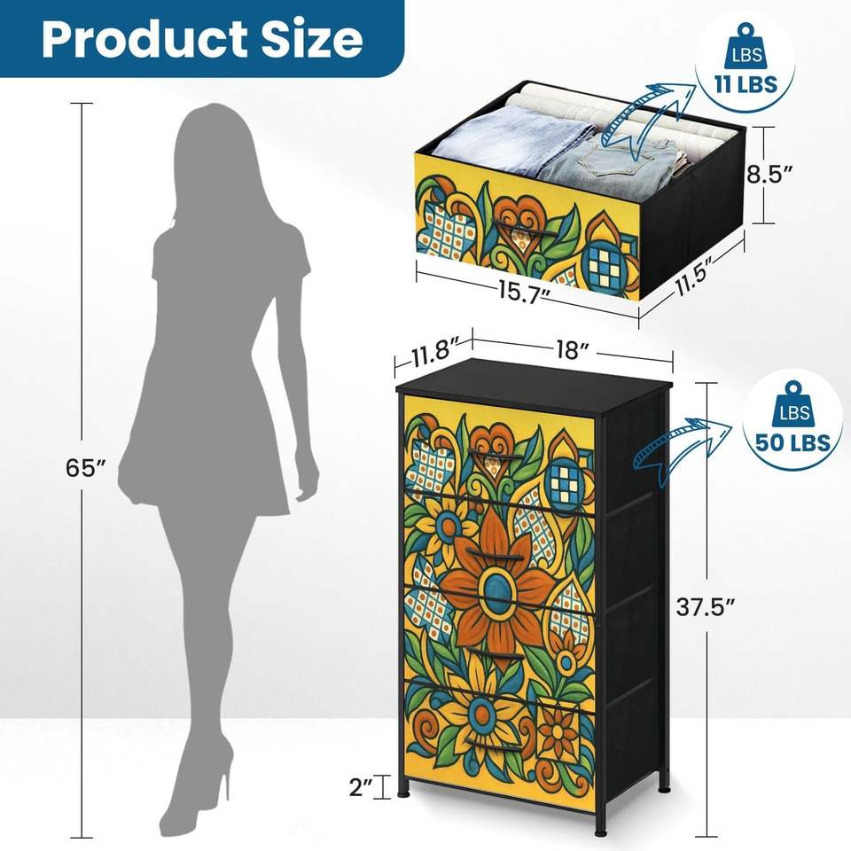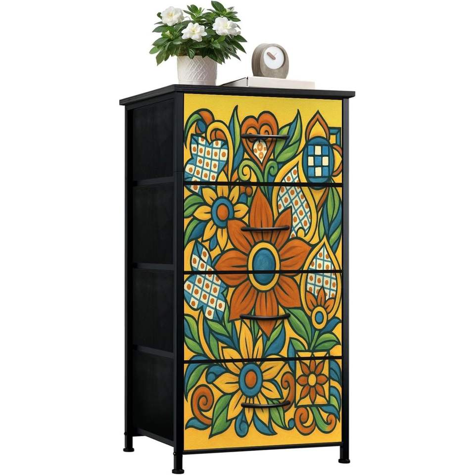 China Talavera Floral 4-Drawer Dresser Ornamental Flower Storage Organizer Teak Bedroom Furniture MDF Wood Home Decor Stock