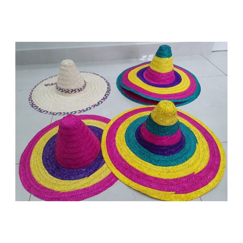 Mexican hat summer beach straw Mexico party cowboy leaf palm raffia seagrass rainbow hats competitive price