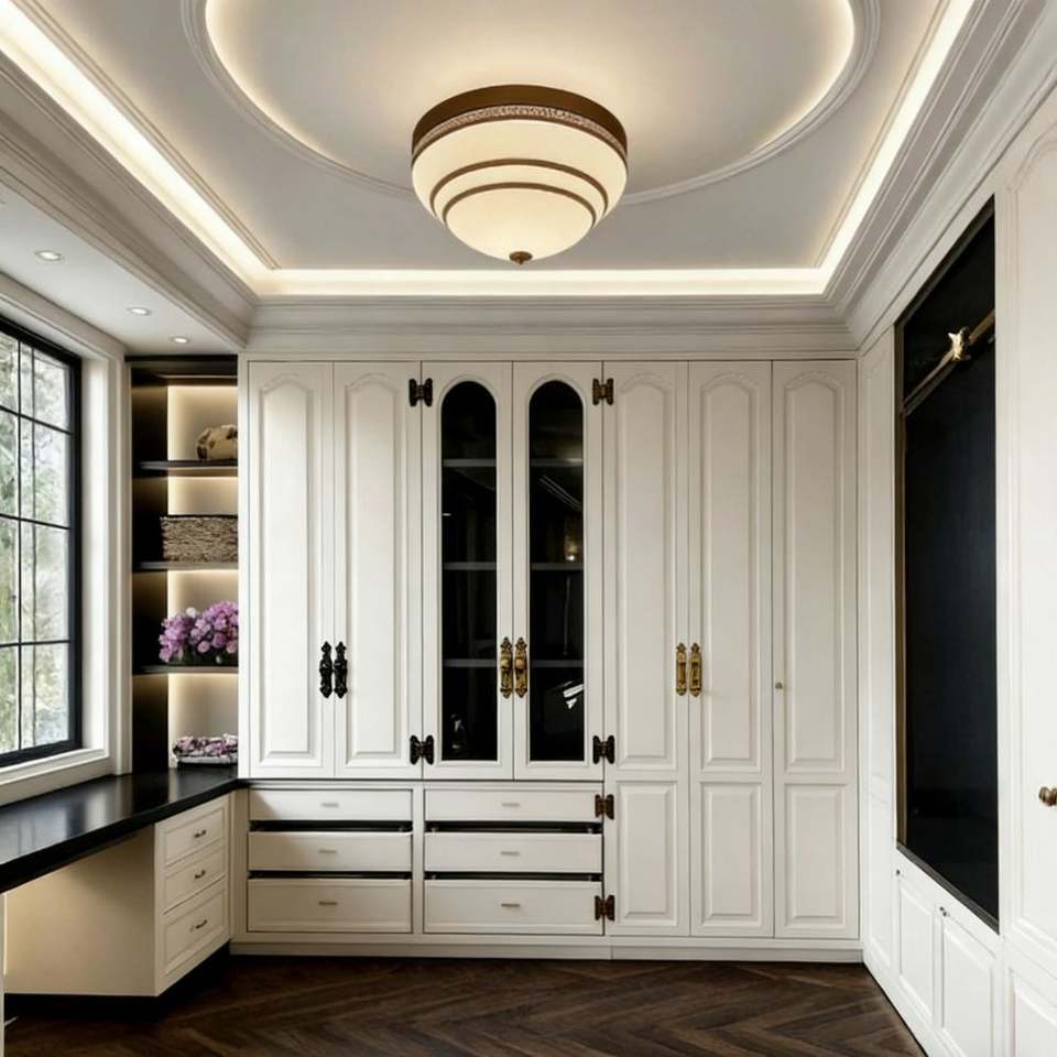 Mexico Residential Project Bedroom Wardrobe Classic White Panel Design Integrated Dressing Desk Walk-In Closet Furniture