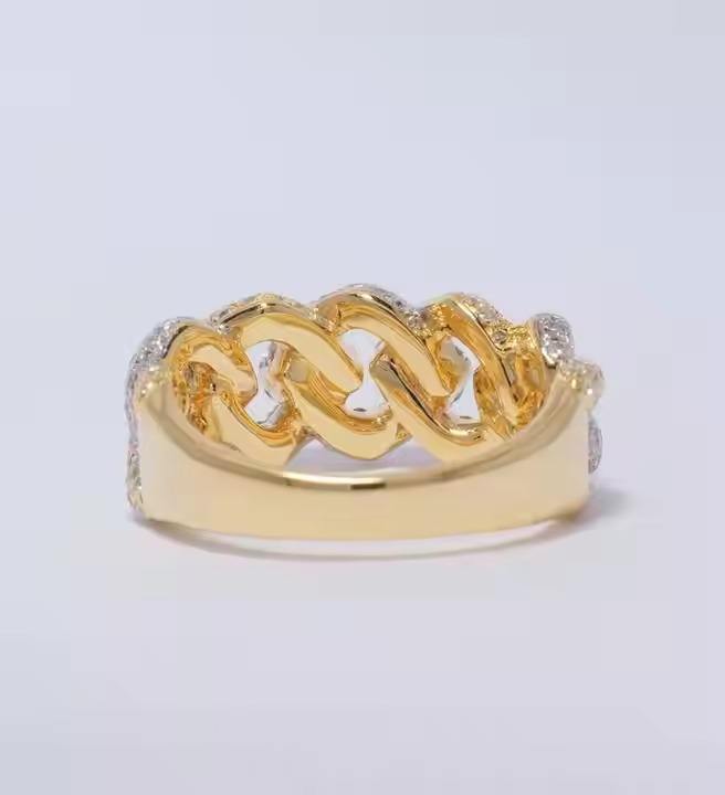 Miami Cuban Diamond Ring 14K Solid Gold Half Eternity Band Iced Out With Handset Lab Grown Diamonds Womens Day Gift