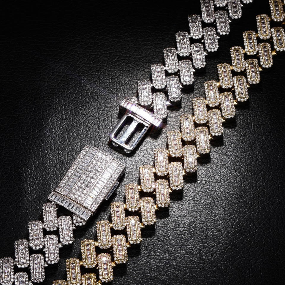 Miami Stylish 20mm Baguette Pave Prong Set Box Clasp Fine Yellow Gold Chains Necklace Trendy Wedding Gift for Engagement Stylish