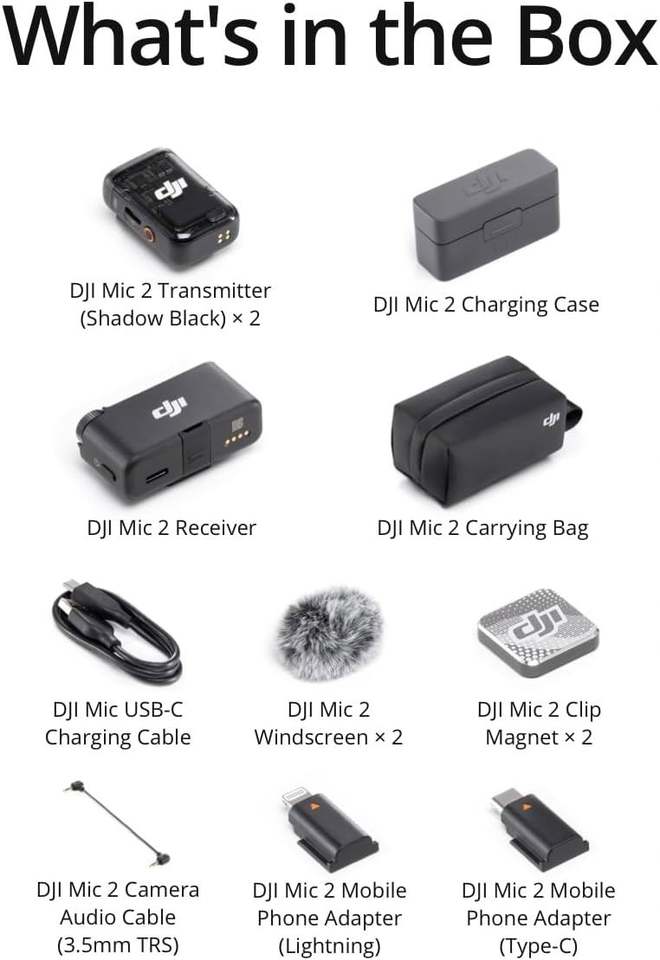 Mic 2 (2 TX + 1 RX + Charging Case) 48-Hour Operation Wireless Microphone Transmission Audio Recording DJ Mic 2