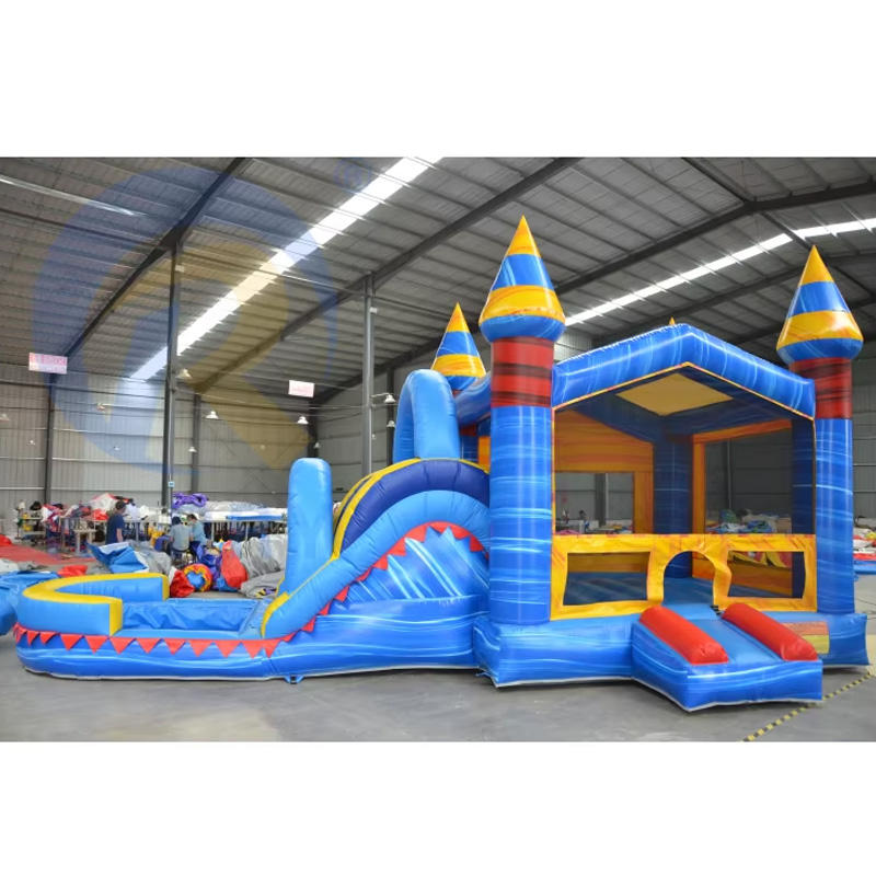Colorful Blue Marble Inflatable Bounce House wiht Slide