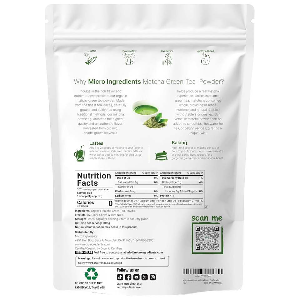 First Harvest 100% Pure Unflavored Culinary Grade Organic Matcha Green Tea Powder 2 lb Micro Ingredients for Bubble Tea Japan
