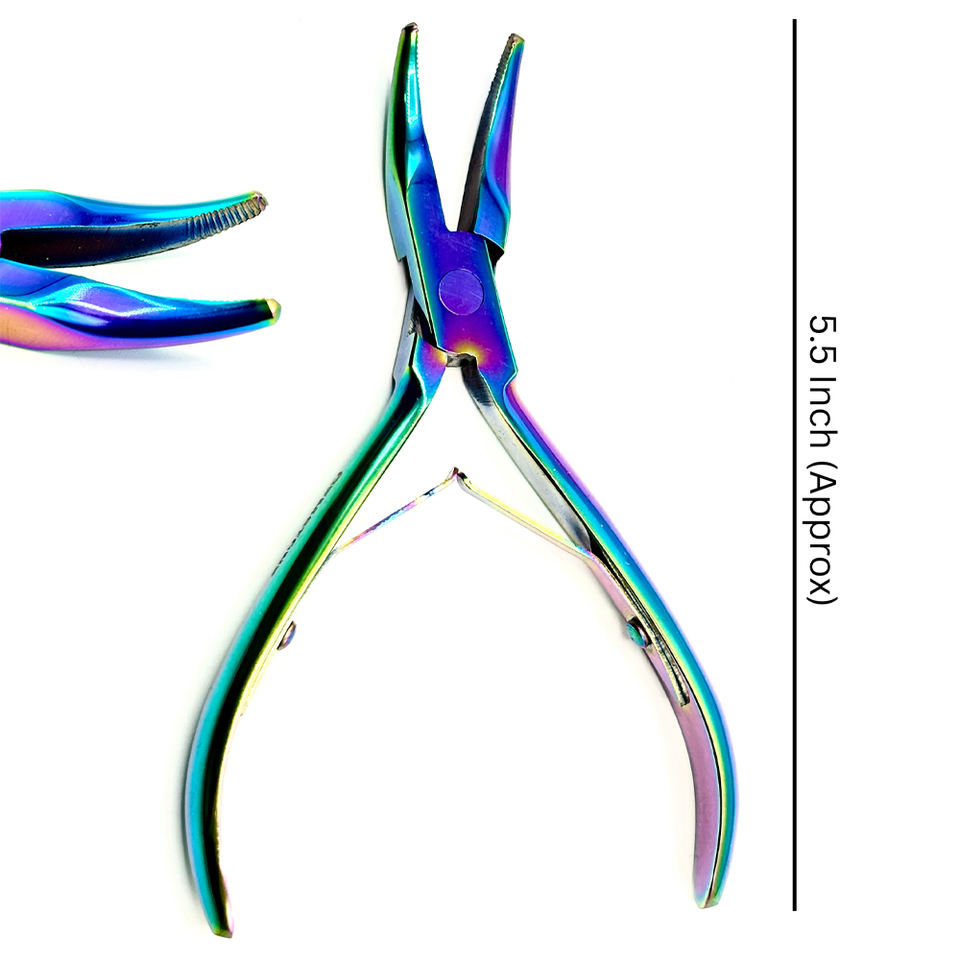 Micro Ring Hair Extension Plier 5.5 Inch Curve Mouth Removal Fitting Stainless Steel Rainbow Color Model
