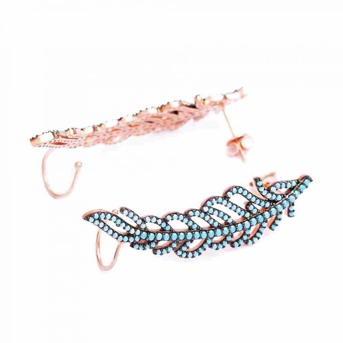 Micro Turquoise Ear Cuff Turkish Wholesale Handcrafted 925 Silver Sterling Earrings for Women