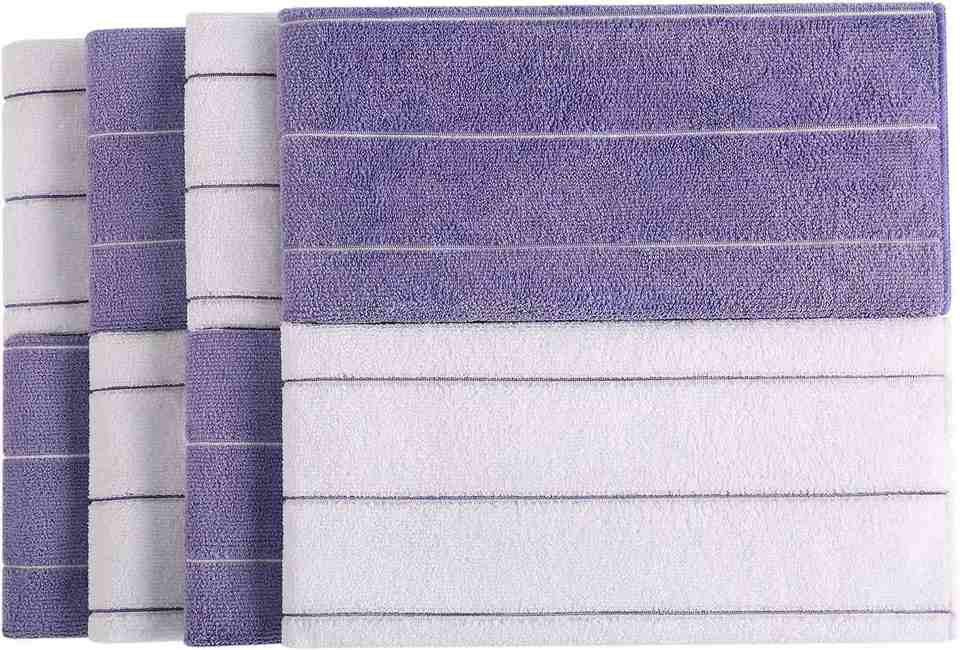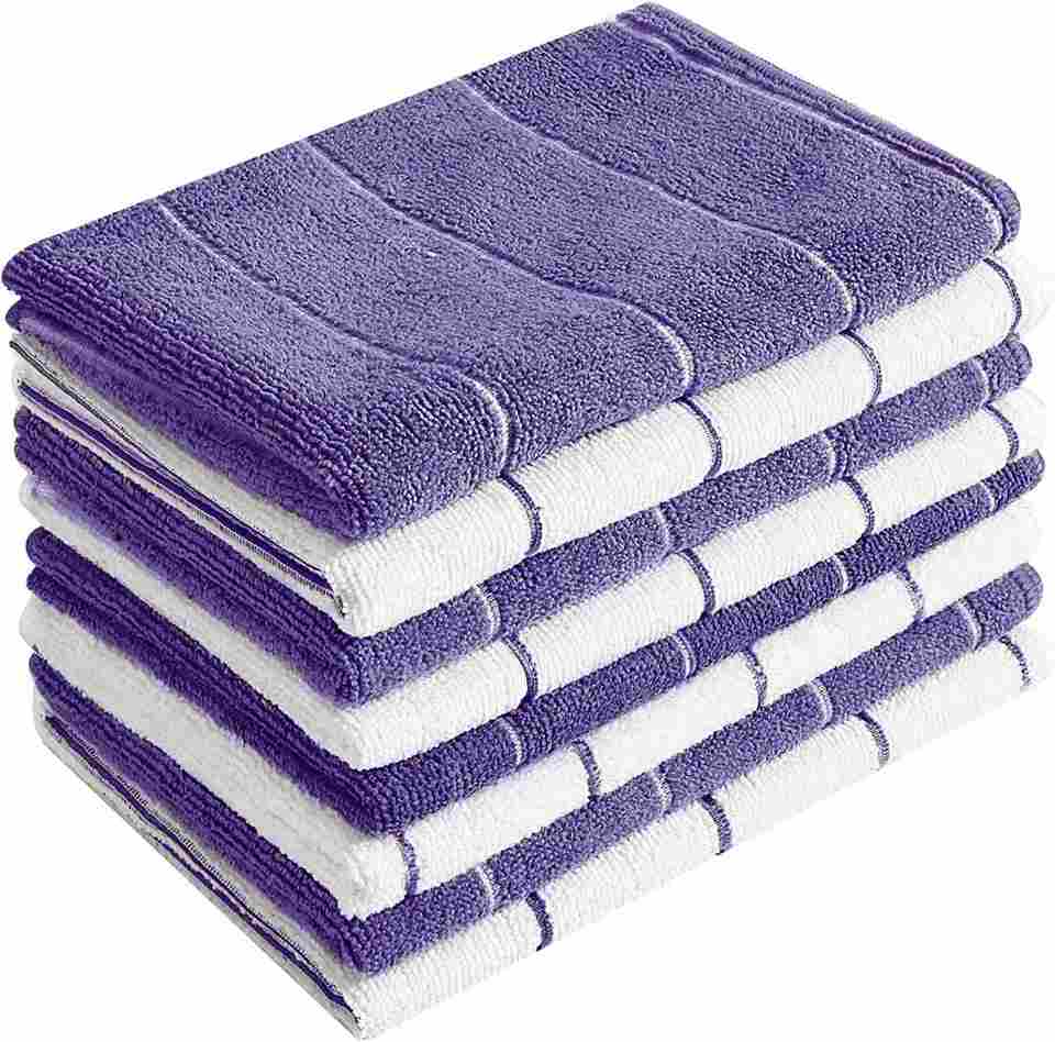 Microfiber Kitchen Towels Super Absorbent Soft and Solid Color Dish Towels 8 Pack Stripe Designed Purple and White Colors