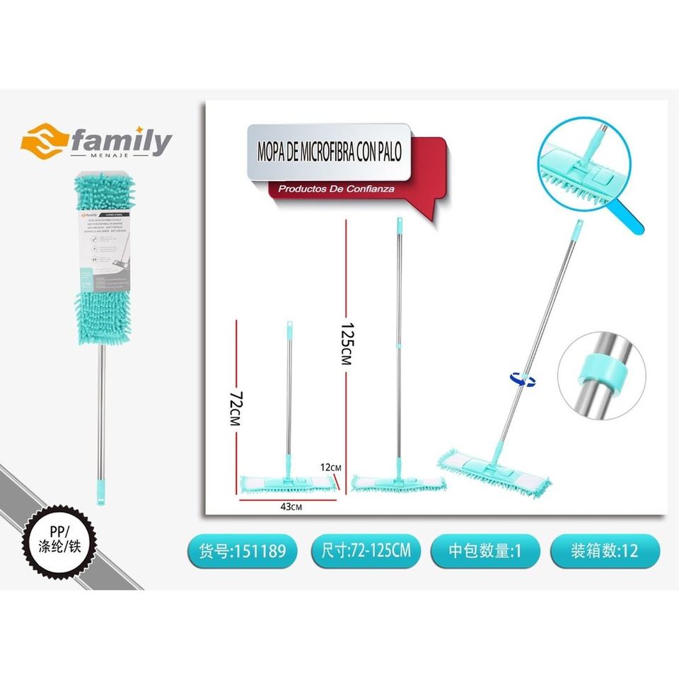 Microfiber Mop with Stainless Steel Handle, Blue, 72-125cm - Cleaning Supplies
