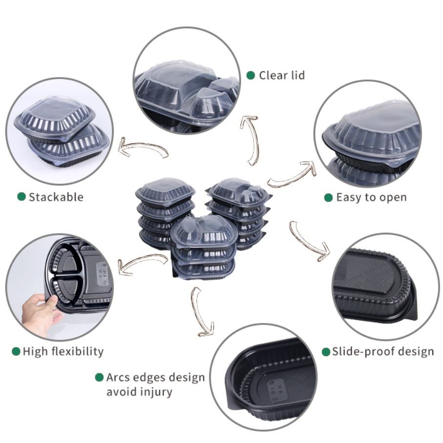 Key word:Disposable PP 3 Compartments Food Boxes