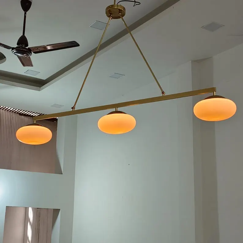 Mid Century 3 Arm Globe Brass Ceiling Chandelier Sputnik Lighting Fixture Vintage Art Decor for Living Room or Dining Room