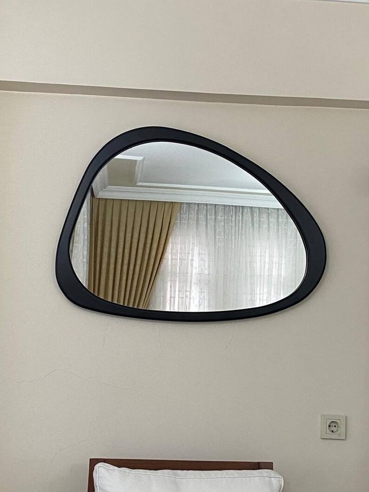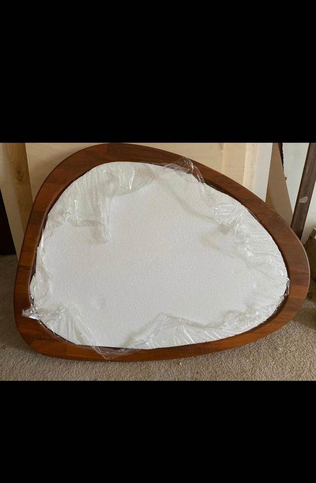 Mid Century Asymmetrical Wooden Decor Accent Solid Walnut and Oak Wood Wall Frame with Art Deco Design Handmade Accent Mirror