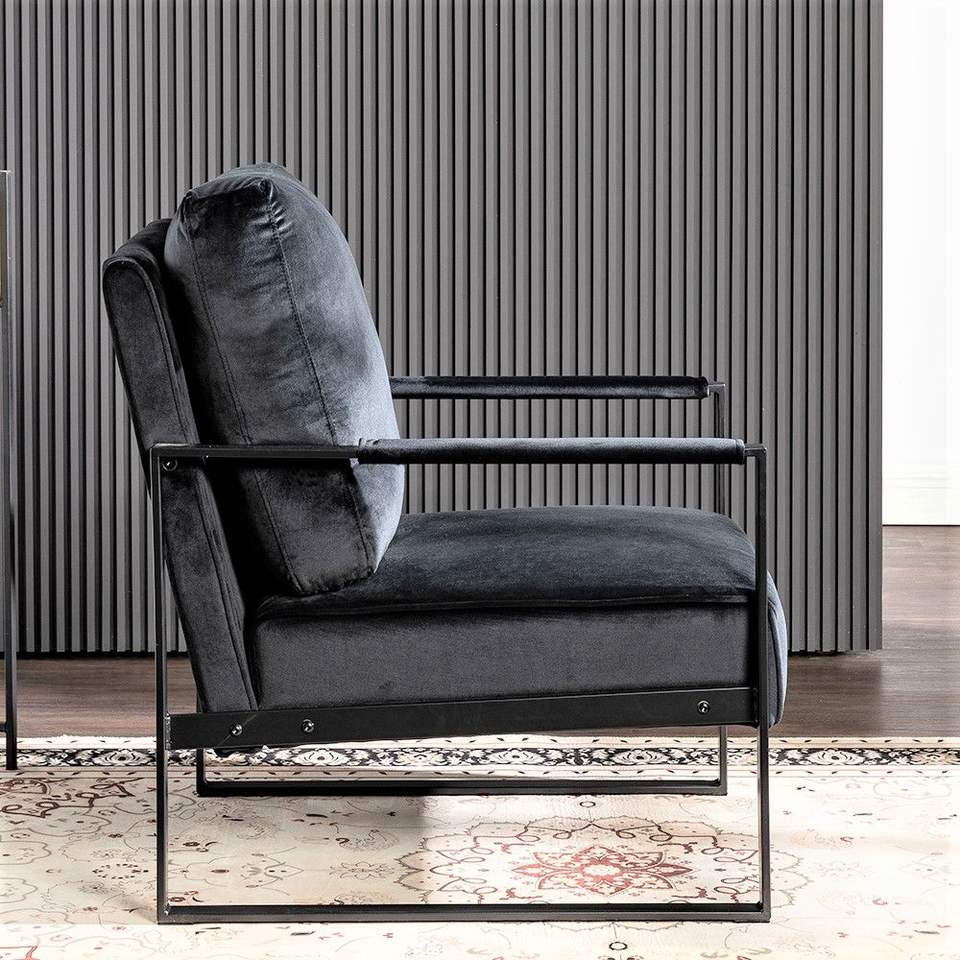 Mid Century Modern Black Living Room Armchair Square Metal Frame with Durable Plush Velvet Upholstery for Home Office & Bedroom