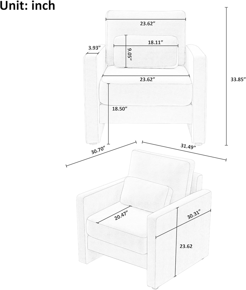 Mid-Century Modern Chenille Fabric Armchair, Comfy Single Sofa Vanity Chair with Pillow & Armrest, Living Room, Apartment,Green