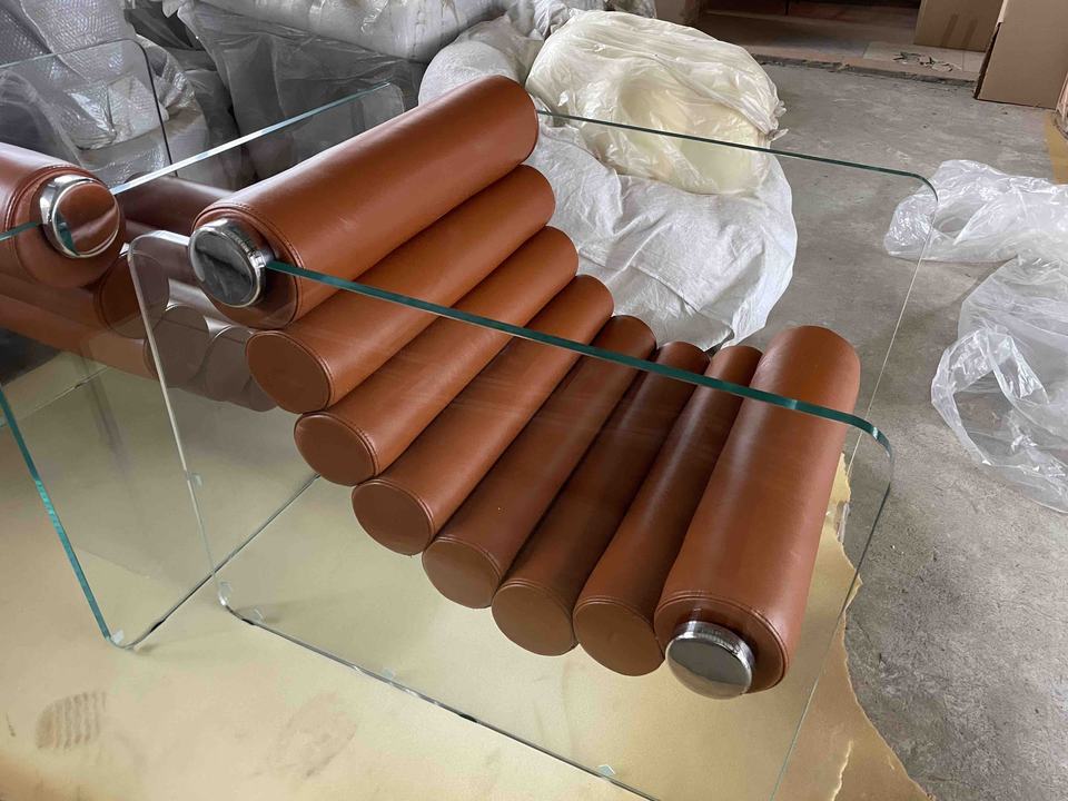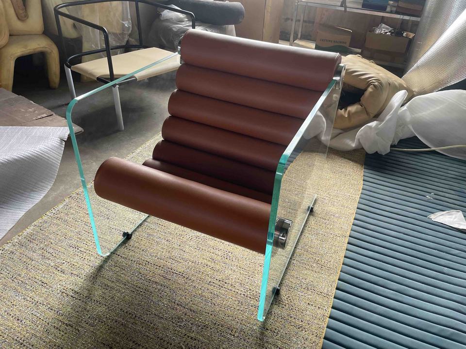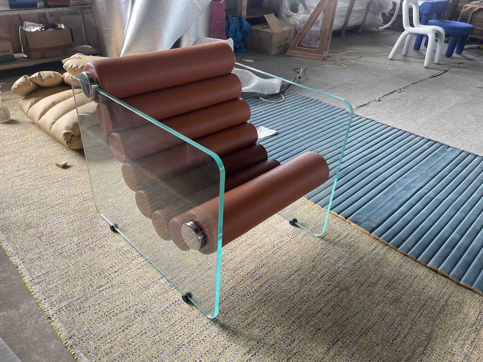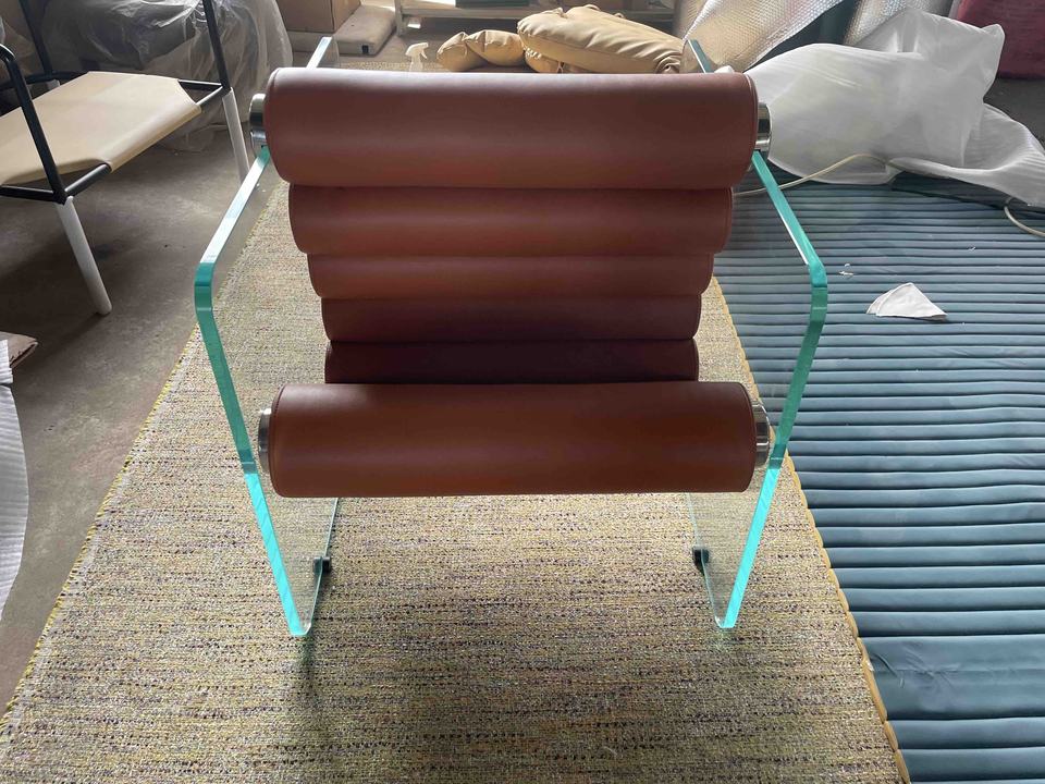 Mid Century Modern Glass Hyaline Armchair Luxury Leather Sofa Chair Villa Chaise Lounge Chairs Living Room Chairs Home Furniture