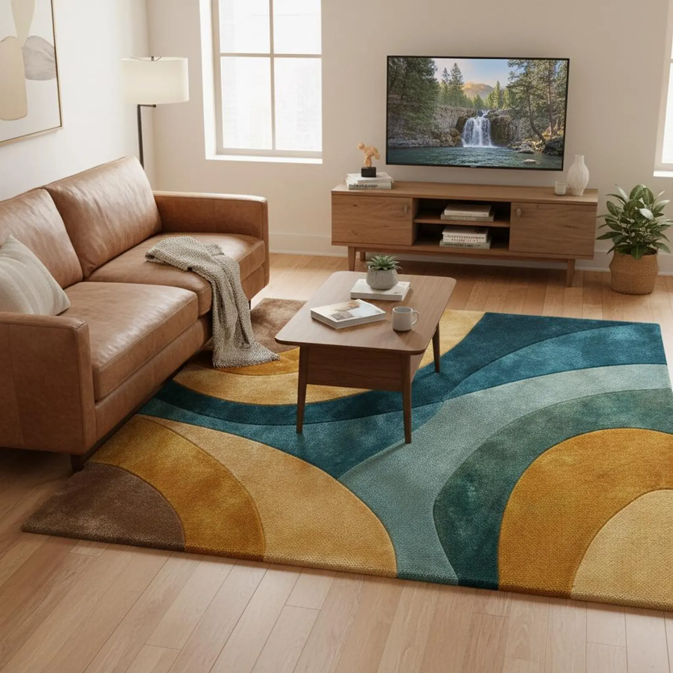 Mid Century Modern Retro Geometric Living Room Area Rug | Contemporary Home Decor High Quality Room Decor Gift for Wedding