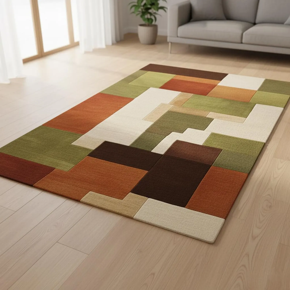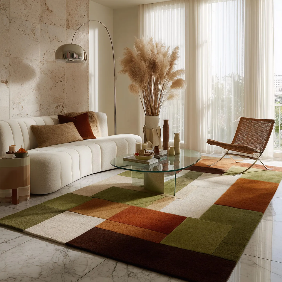 Mid Century Modern Retro Wavy Wool Rug Plush Carpet for Living Room, Bedroom, Dining Room Contemporary Vintage Teppich