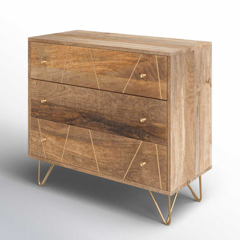 Mid-Century Modern Solid Wood 3-Drawer Dresser with Elegant Brass Accents