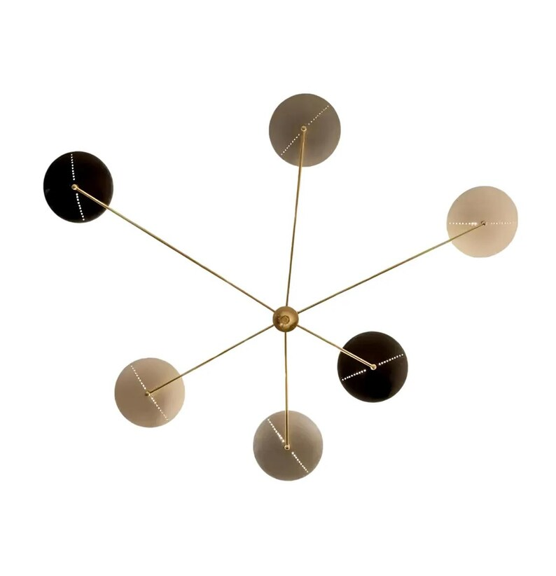 Mid Century Modern Sputnik Chandelier Six Light Brass Spider Dome 48" Retro Ceiling Fixture Elegant Pendant Light for Home Decor