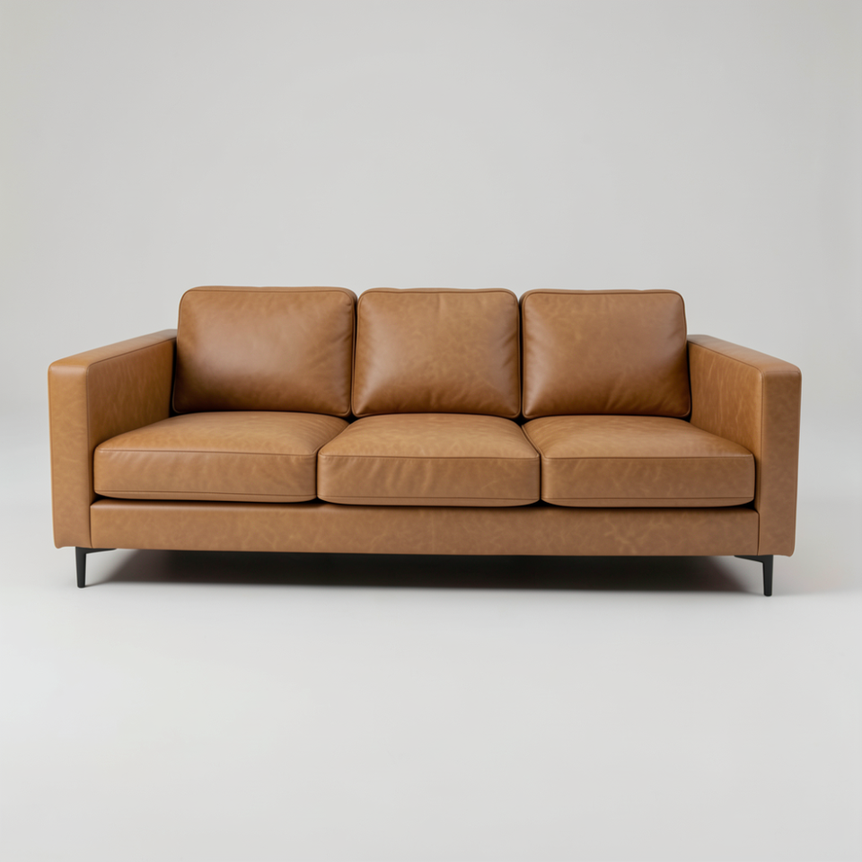 Mid-Century Modern Style Genuine Cow Leather Sofa 3 Seater Brown Leather Couch Durable Wood Frame for Living room Furniture
