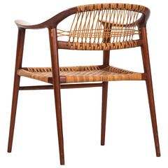 Mid-Century Modern Wishbone Arm Dining Chair Made from Solid Walnut Wood and Handwoven Rattan Cord in a Natural Matte Finish