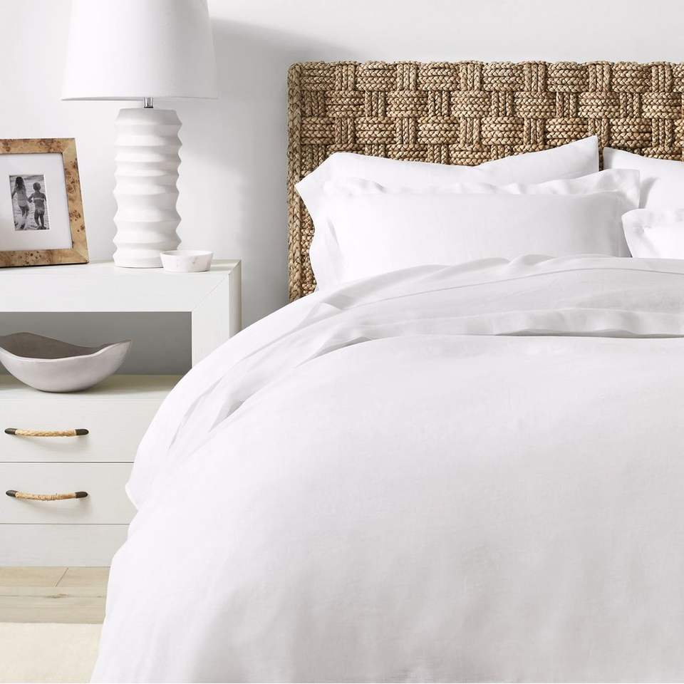 Mid-Century Modern Woven Bed Frame with White Cushions Furniture Cheaper