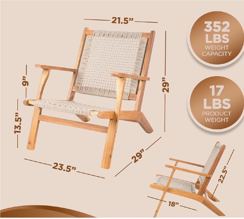 Mid Century Reclining Armchair Comfortable Acacia Wood Patio Lawn & Garden Backyard Chair Hand Woven Seat Natural Stain Outdoor