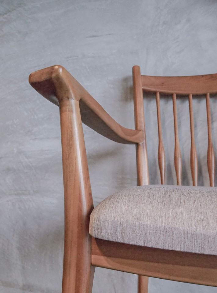 Mid Century Solid Teak Wood Armchair with Upholstered Seat Modern Wooden Dining Chair with Arms for Living Room and Office Japan