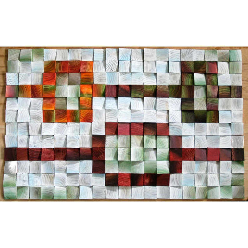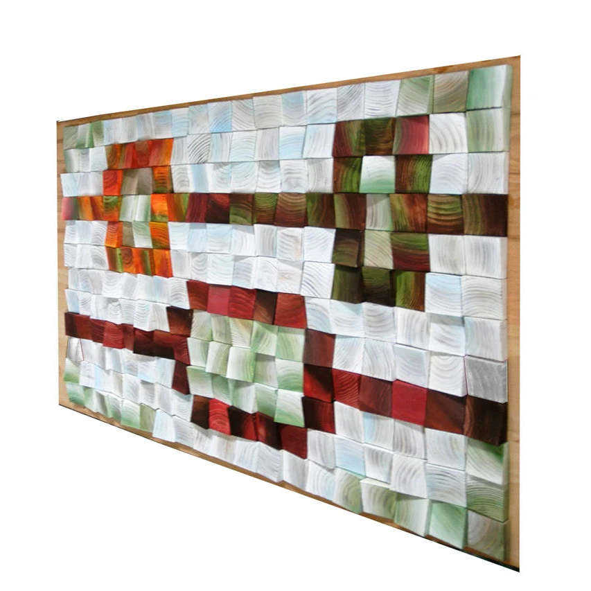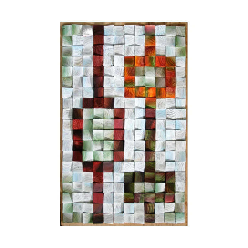 Mid Century Wood Mosaic Wall Art Decor Unique Vintage Design in Multiple Sizes for Home or Office