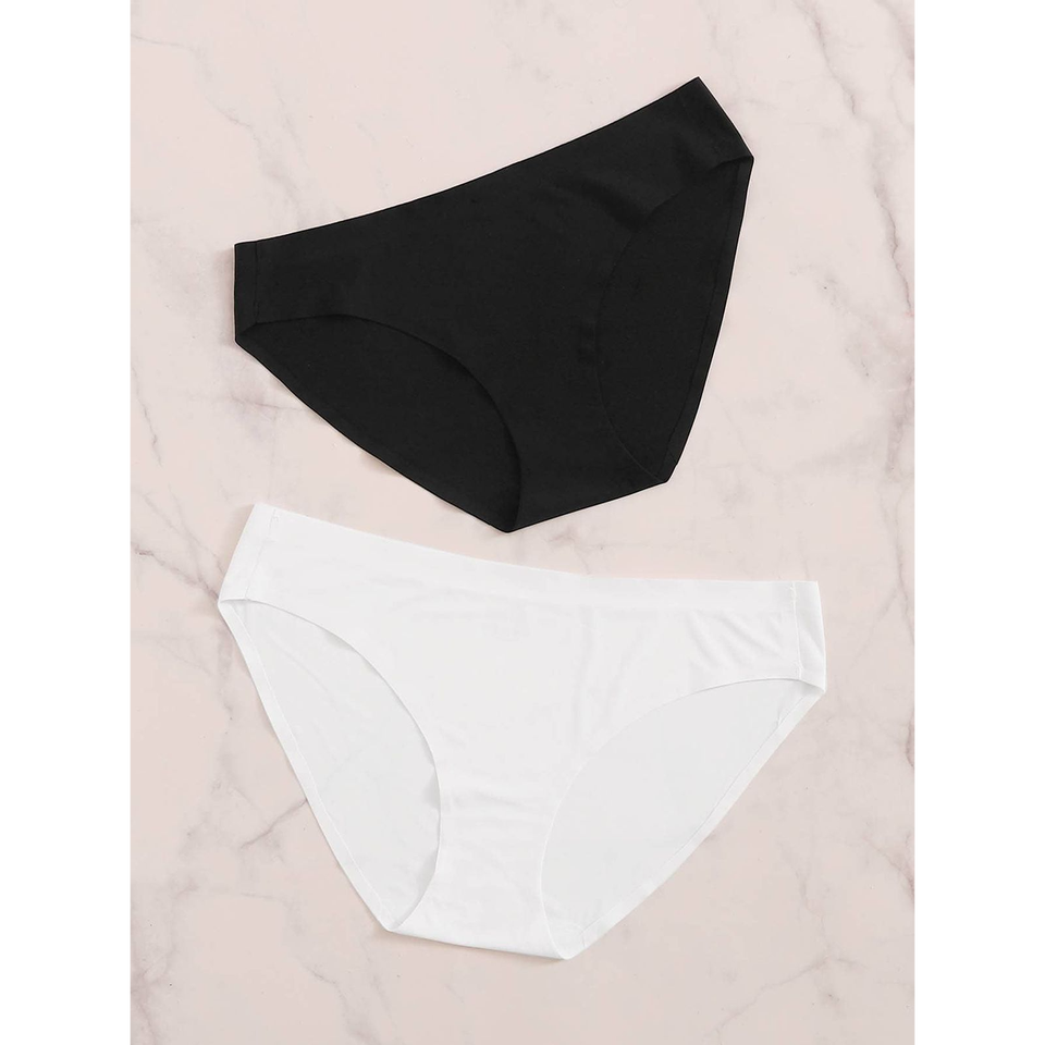 ASM1201 Women's 2 Piece Black and Ecru Crossed Lace Panties Comfortable Shorts for Women