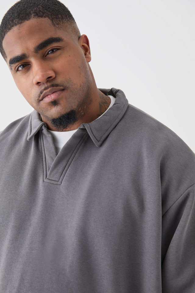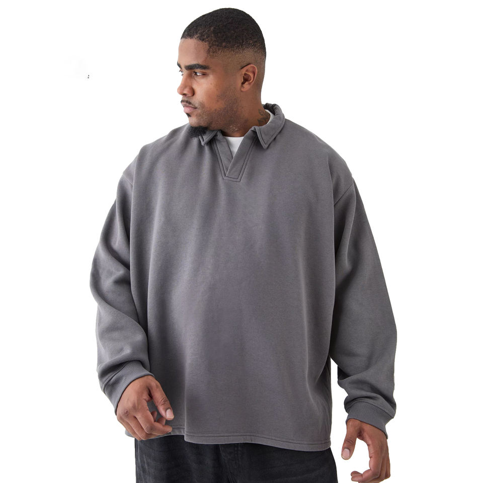 Mid-Weight Letterman Sweatshirt for Men Plus Size Drop Shoulder Oversize Long Sleeve Crew Neck Fleece Sweater Embroidered Design