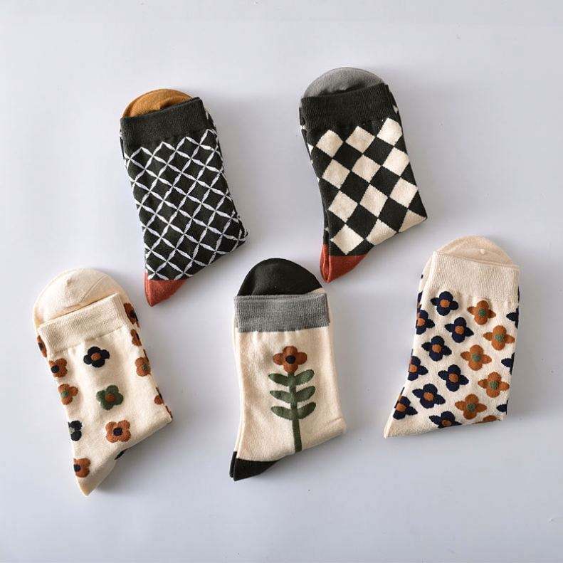 Mid-calf Cotton Flower Socks Crew Mid Tube Socks for Women Sweat Absorption Soft Socks