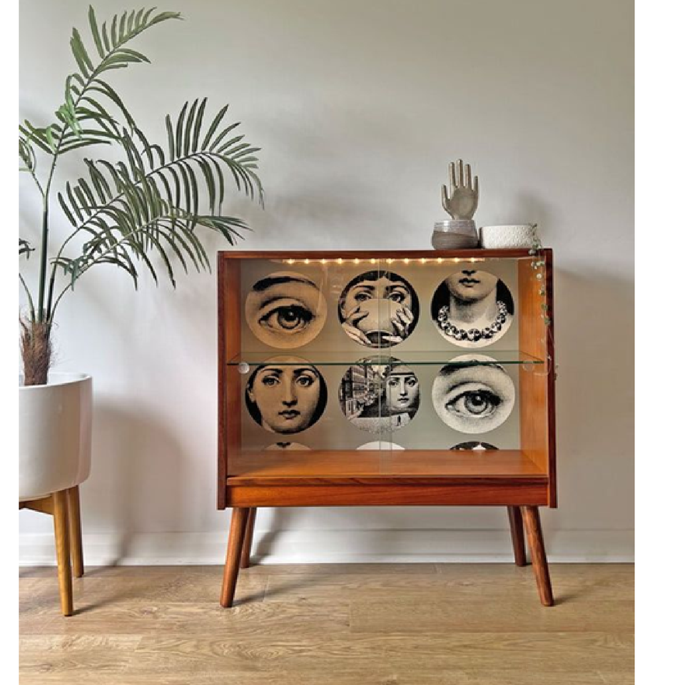 Mid-century modern bar cabinet with lighting, retro design, and a drop-down front, a classic piece for home entertaining