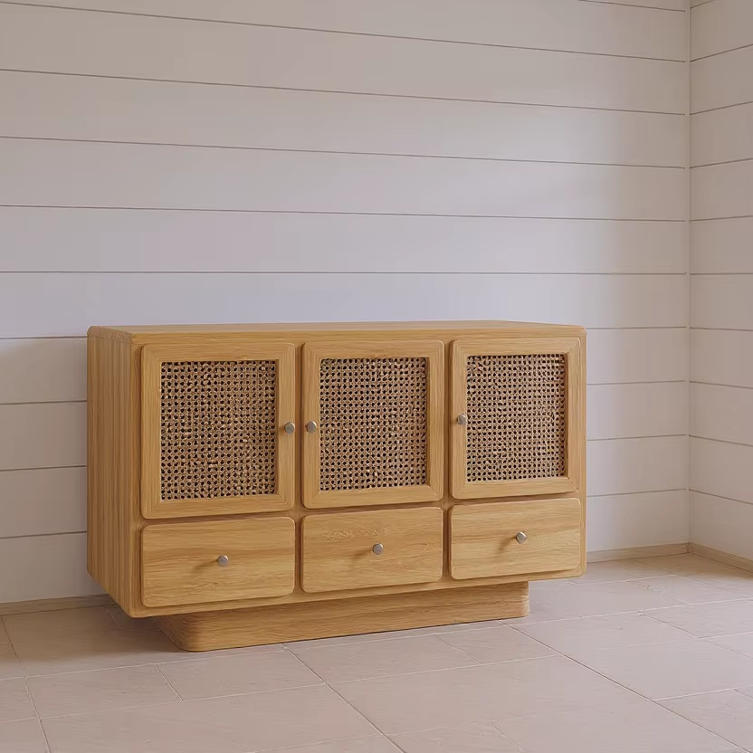 Midcentury Design Solid Wood Antique Sideboard High Quality Rattan for Living Room Dining Room Kitchen Hotel Furniture