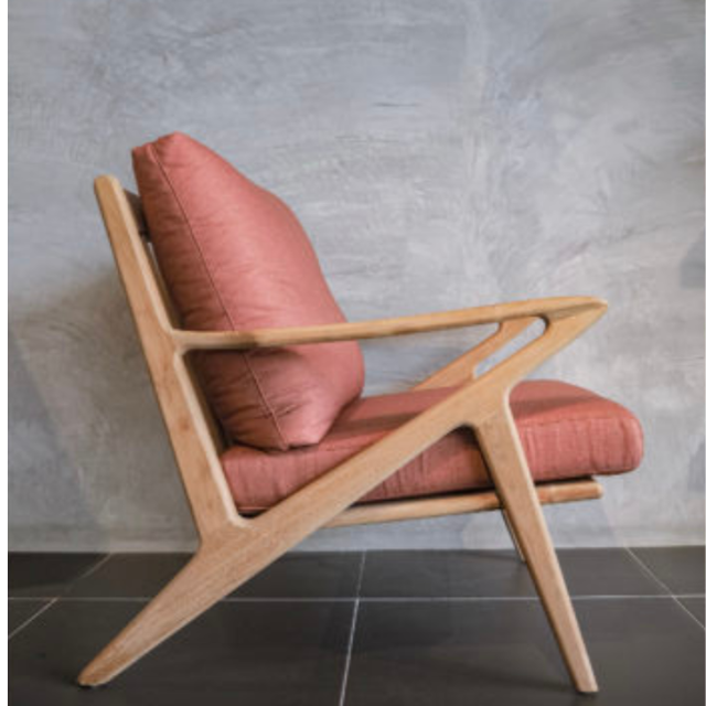 Midcentury Teak Lounge Chair with Striking Geometric Arms made in indonesia