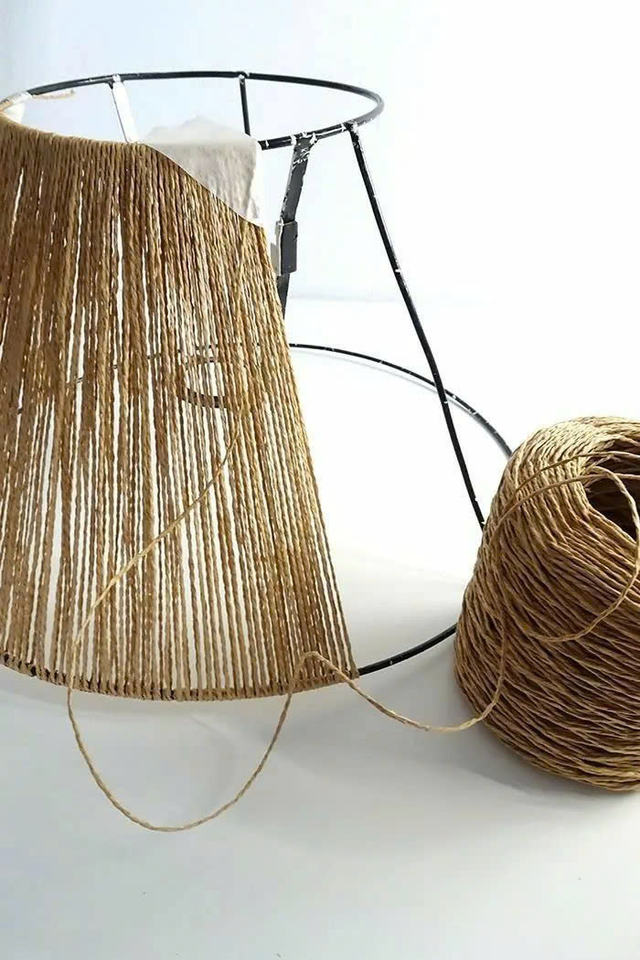 Midcentury Vintage Jute Lamp Shade with Iron Body for Home Decorations Wholesale Cheap for Living Room Use