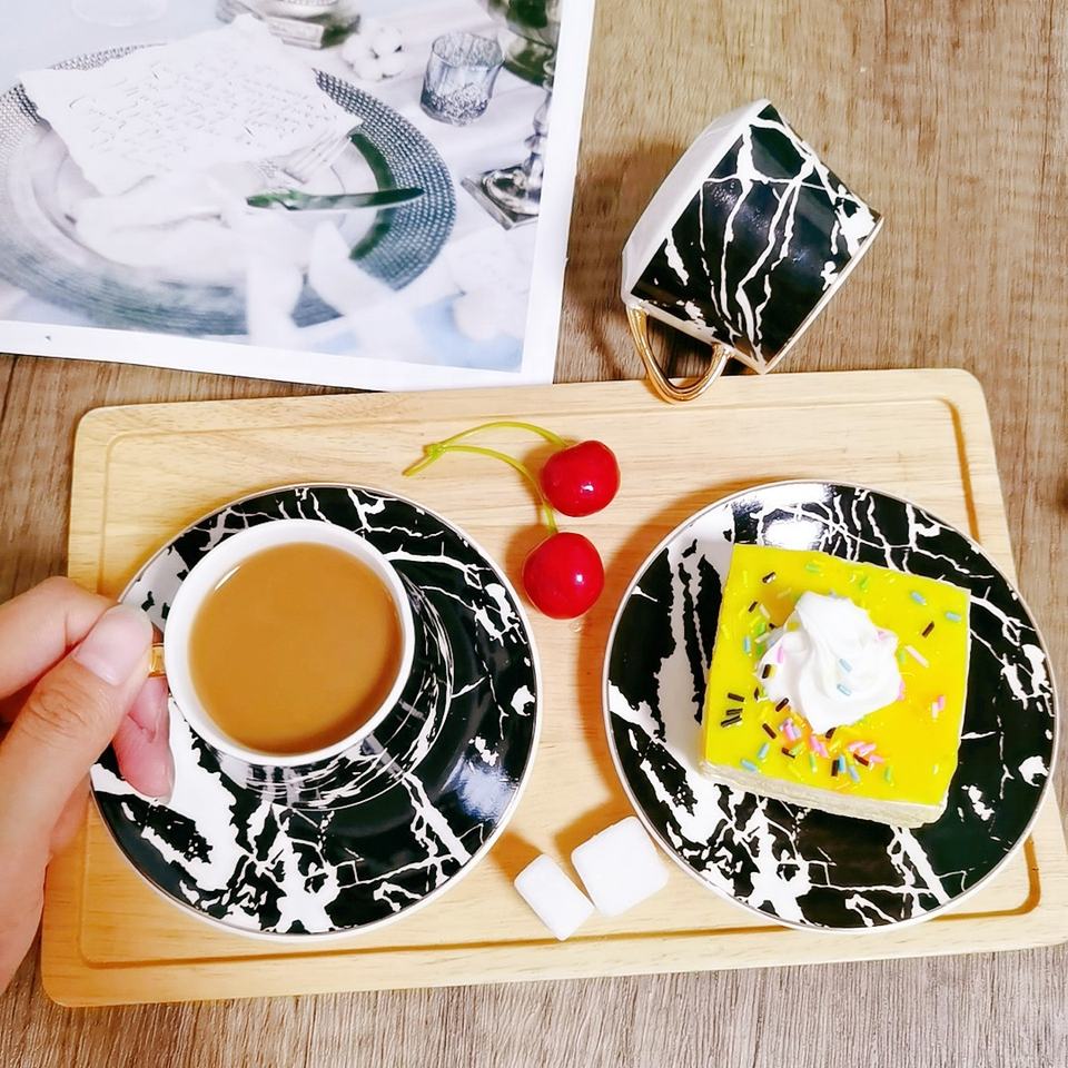 Middle East Saudi Arabia UAE Export Electroplated Porcelain Coffee & Espresso Cup Saucers 6-Piece Minimalist Design Gift Box