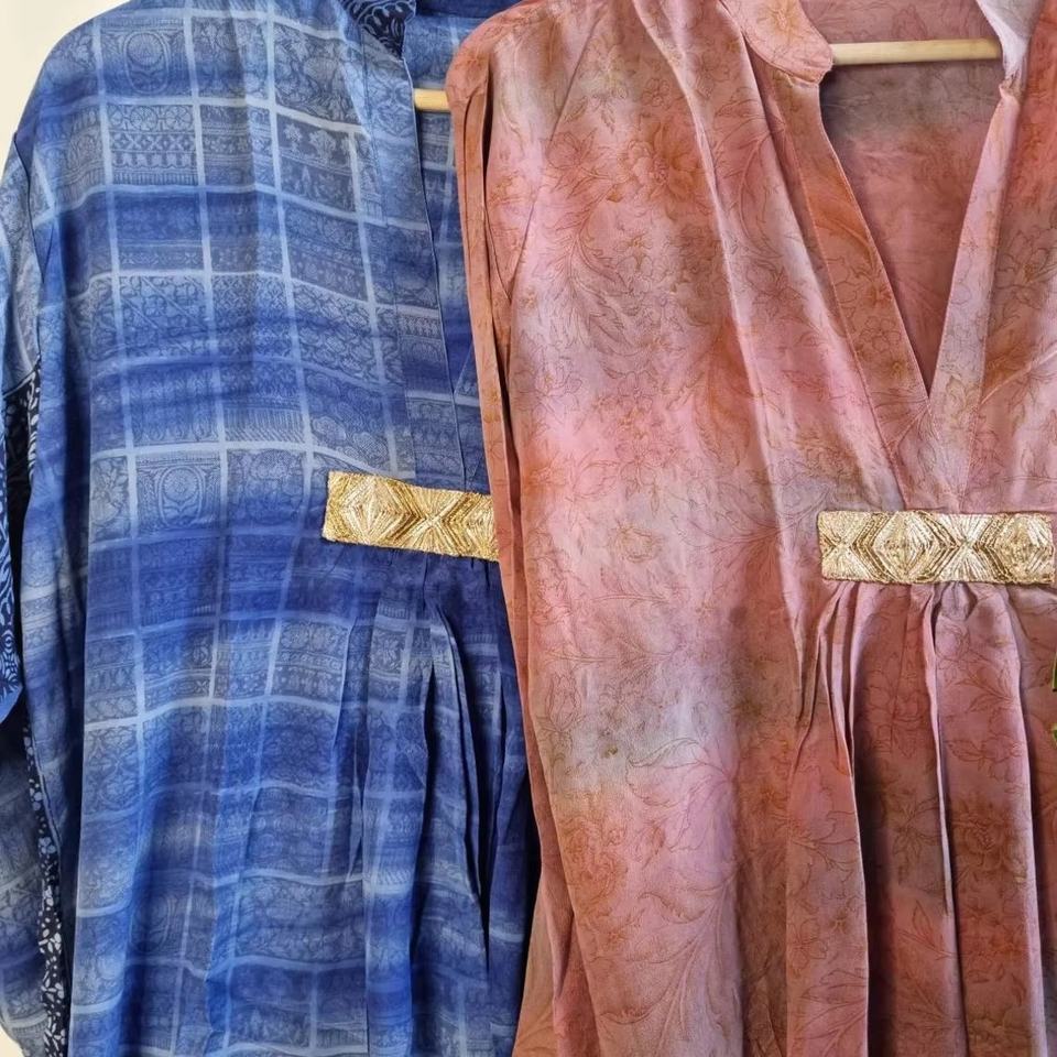 Middy Dress Crepe Silk Recycled Indian Sari Comfortable Colourful Comfy Daywear Kaftan Evening Casual Dresses