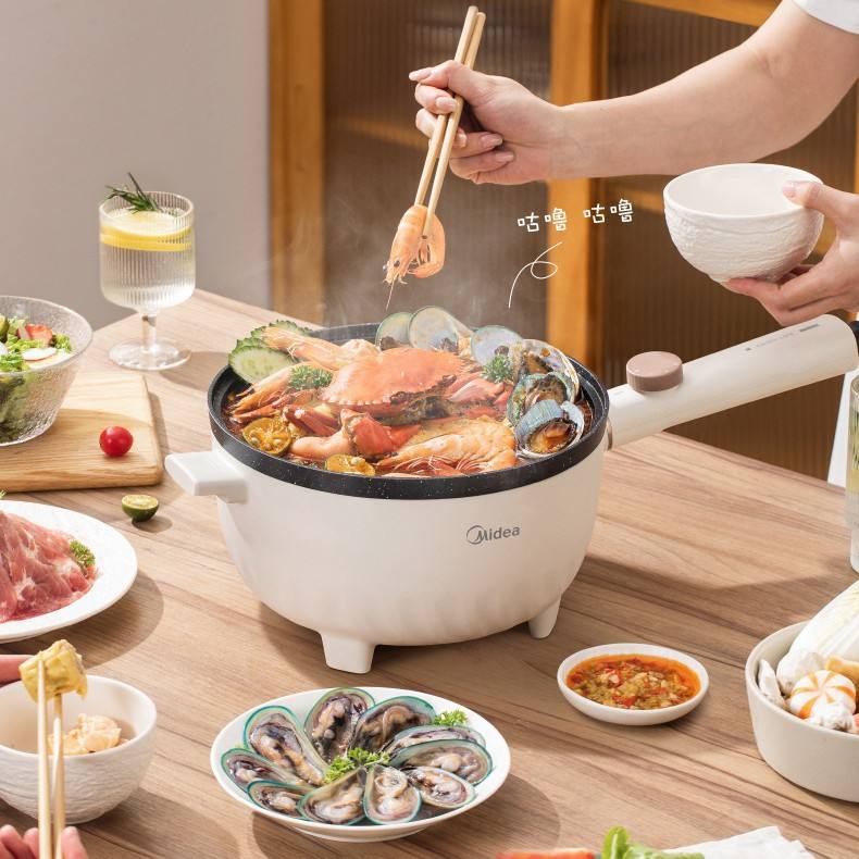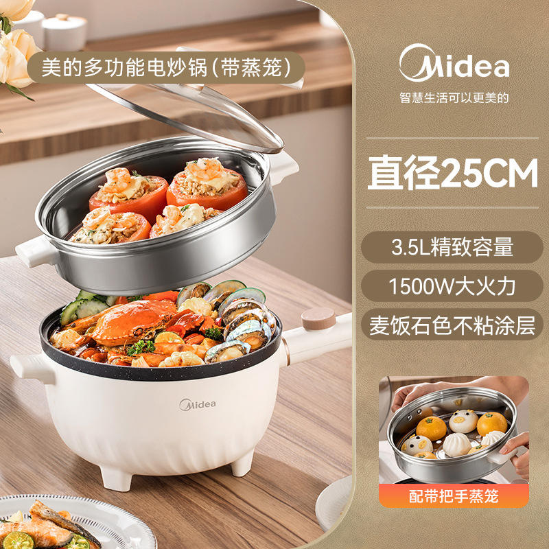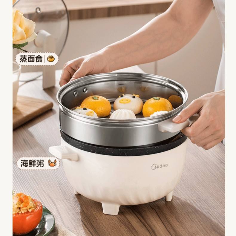 Midea Electric Food Steamer 2.5kg Light Apricot Green Tempered Glass Lid Multi-Functional Cooking Pot