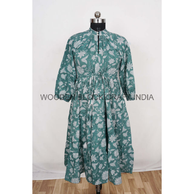Midi Dress with O-Neck and String Closure Gifts for womens Block Printed Women's Summer Party Dress New Style 100% Cotton