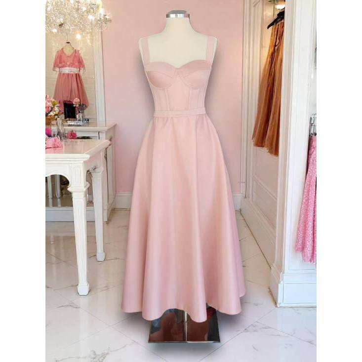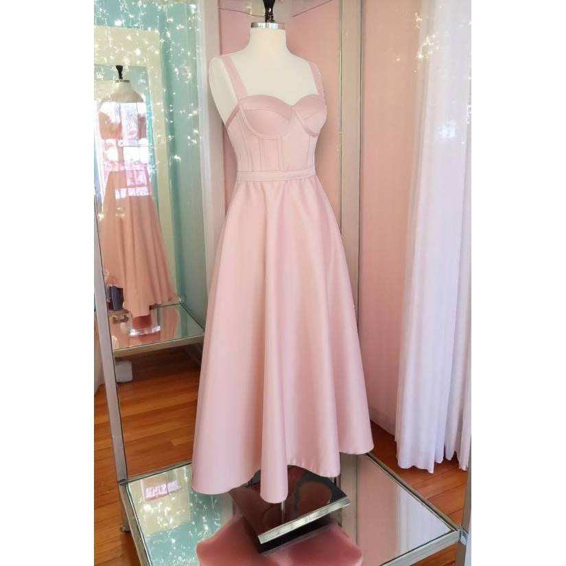 Midi Satin Evening Graduation Dress Empire Waist Ball Gown Silhouette Short Strapless Polyester Woven Appliques-Available XS XL