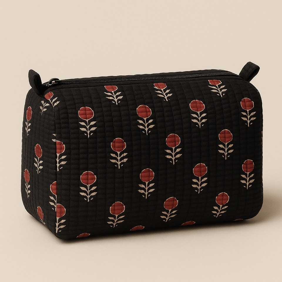 Midnight Bloom Quilted Cotton Pouch - Modern & Eco-Luxe Everyday Bag