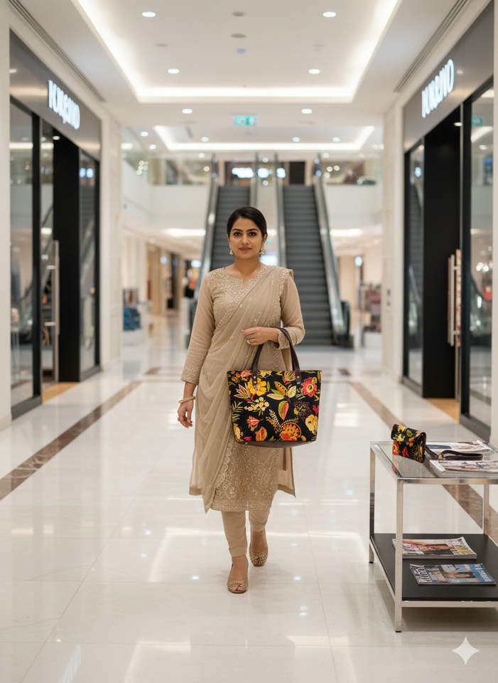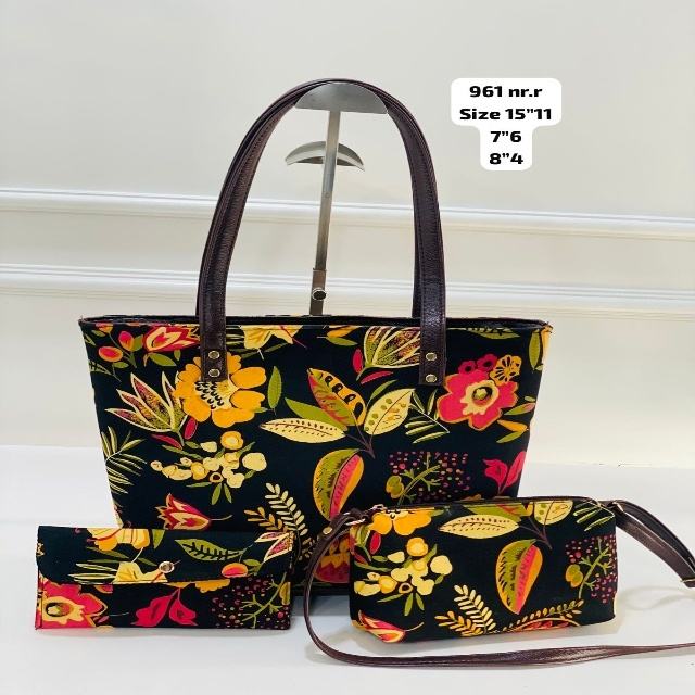 Midnight Bloom Women Tote Bag 3-Piece Set with Sling Pouch & Wallet Soft Durable Eco-Friendly Fabric Office Daily Handbag