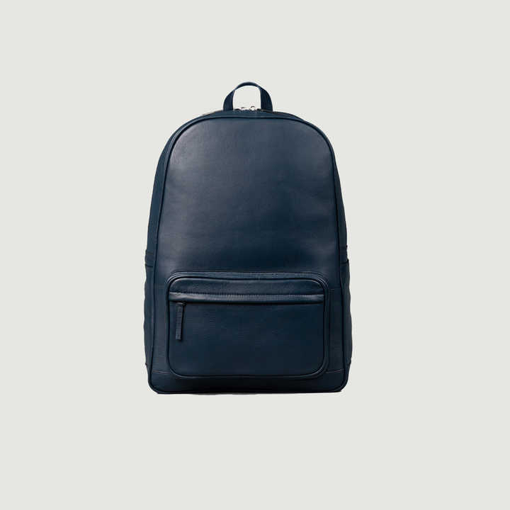Midnight Blue 100% Real Leather Full Grain Naturally Milled Cowhide Leather Backpack with Cotton Twill Inside and Two-Way Zipper