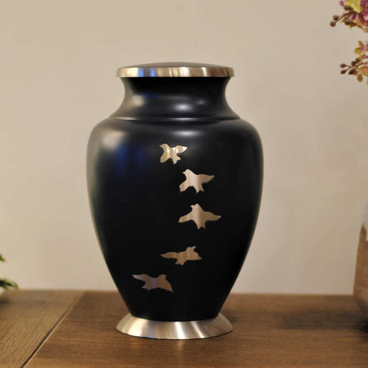 Midnight Blue Modern Brass Cremation Urn Human Ashes Handcrafted Eco-Friendly Durable Portable Customizable Size Large Capacity