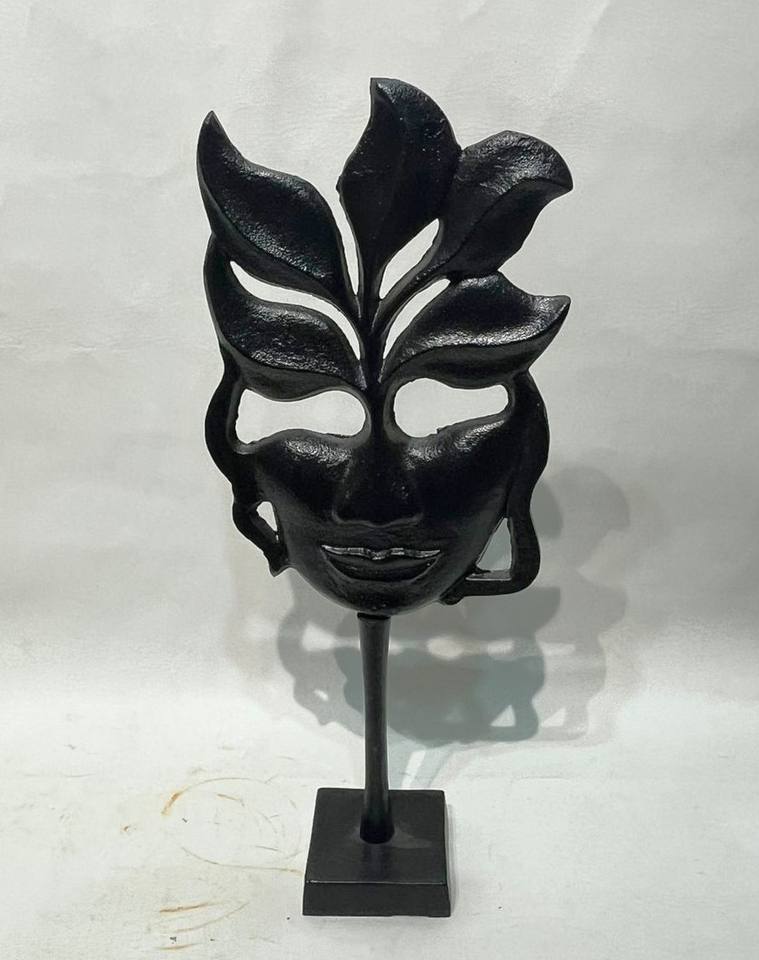 Midnight Leaf Mask Aluminum Sculpture refined and artistic living spaces offices hotels galleries decor piece in bulk price