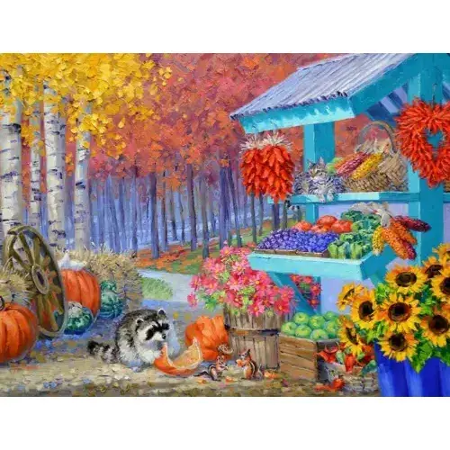 Mikki Senkarik MSA259AT Unique Animal Paintings Accent & Decor Tile Fruit Stand Tile with Fruit Stand Unique Animal Paintings