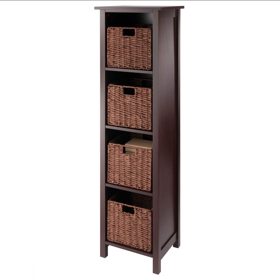 Milan 5-Piece Storage Shelf with 4 Walnut Foldable Woven Baskets