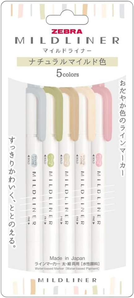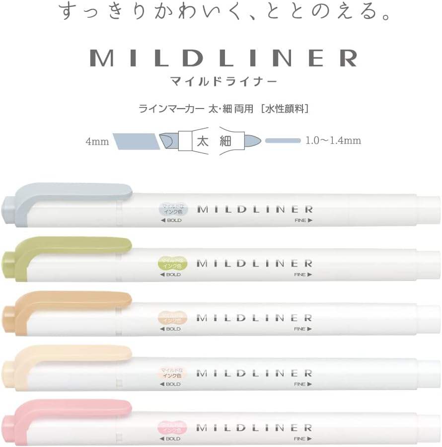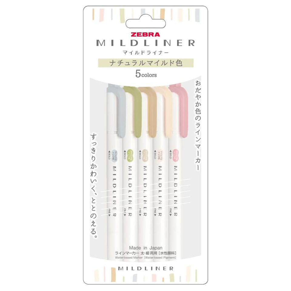 Mild 5-Color Set Mildliner Natural Multifunctional Markers Premium Highlighter Pens