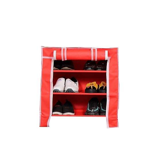 Mild Steel Red Shoe Rack/Shelve Stand 3-4 Layer Utility for Bags/Newly Launched in India Made with Stainless Steel